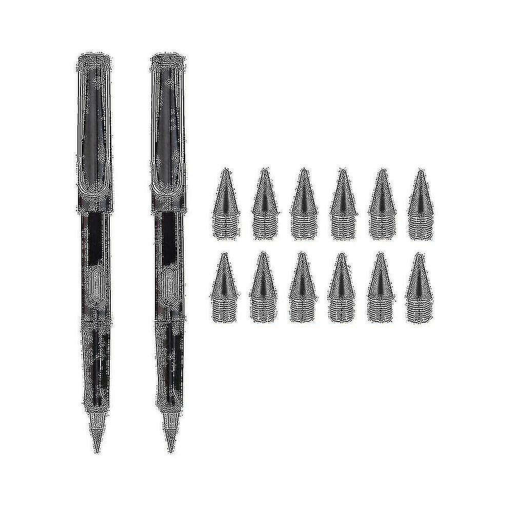 2pcs Everlasting Pencil Inkless Pencil,reusable Everlasting Pen With Eraser And 12pcs Nibs,erasable