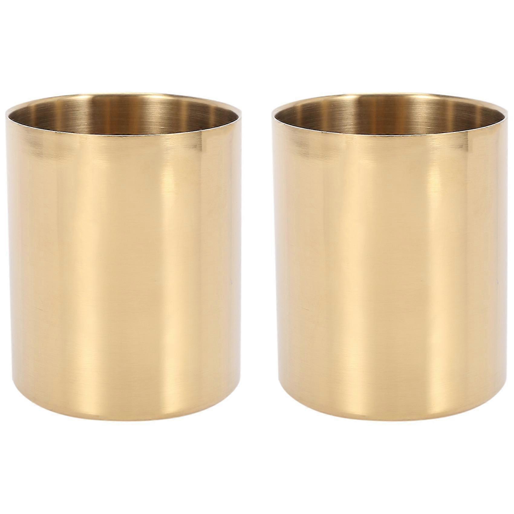 2-piece Pencil Cup Holder Pen Pot Makeup Brushes Holder Desk Stationery Organizer Stainless Steel (