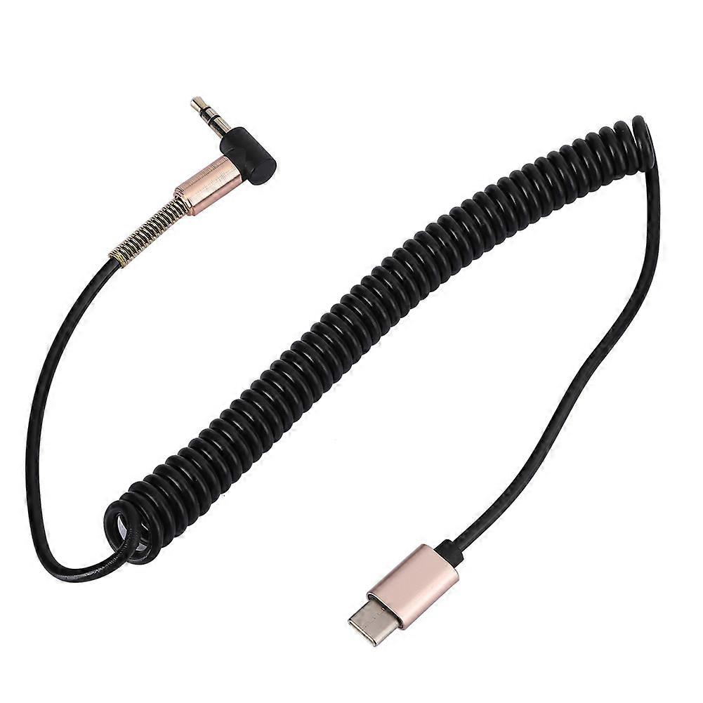 2PCs Audio Cable Type C to 3.5mm Male Adapter Cord Car Aux Line Elbow Spring Telescopic Black(Black )