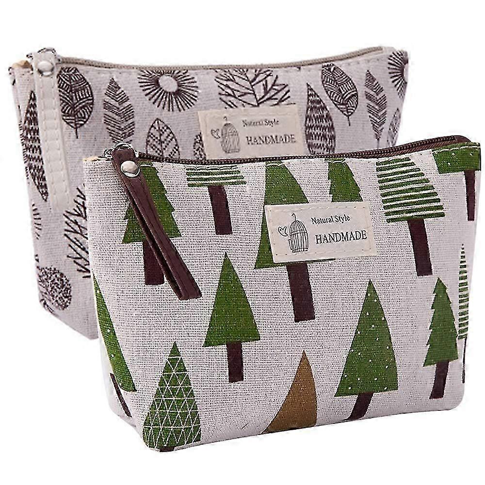 2 Pcs Womens and Girls Funny Canvas Makeup Bag Roomy Cosmetic Bag Pouch Purse Handbag with Zipper (Style-7)