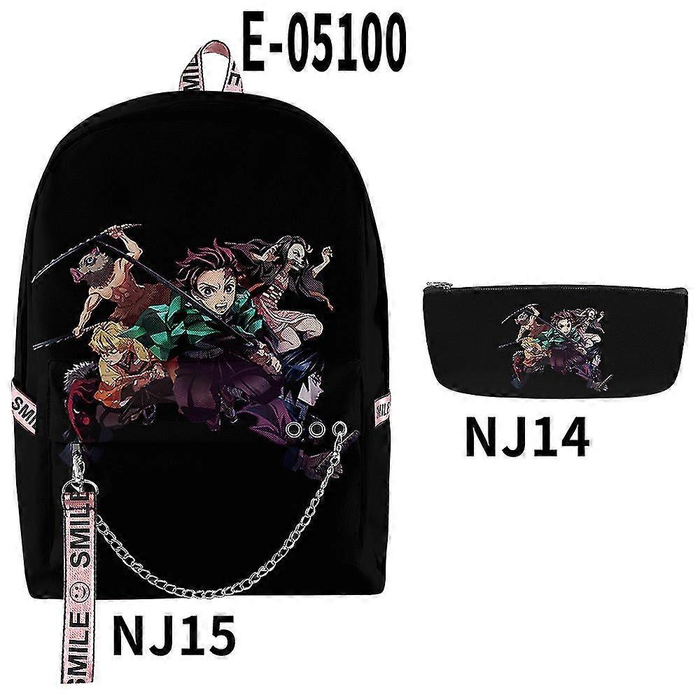 2pcs/set Japan Anime Demon Slayer Children Schoolbag Backpack And Pen Case Boys Girls Oxford Waterproof Cartoon Cute Laptop Bag