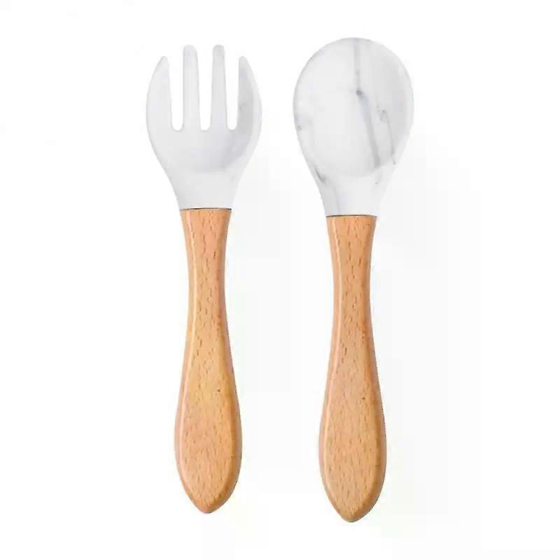 2pcs/set Tableware Baby Spoon Fork Set Children's Silicone Wooden Feeding Training Baby Dinnerware Cutlery Baby Feeding Supplies