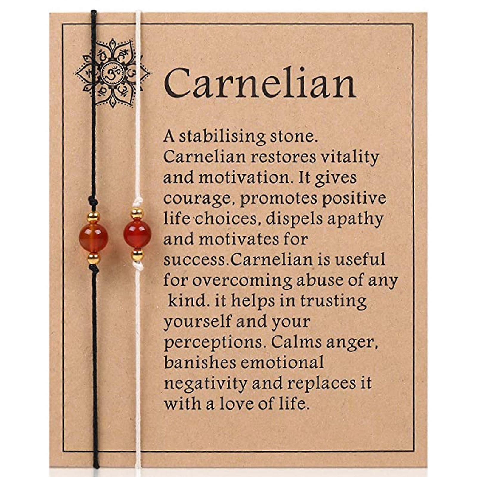 Features: brand new and high quality Crystal Healing Bracelet: you will get 2 pcs for wish bracelet anklet . the carnelian crystal restores vitality and motivation, and stimulates creativity. It gives courage, promotes positive life choices, dispels apathy and motivates for success. for Wish Bracelet Card:natural carnelian bracelet along with a descriptive for wish card with the meanings, uses and properties of the crystal.helps in trusting yourself and your perceptions. It overcomes negative conditioning and encourages steadfastness, improves your analytic abilities and clarifies perception. Unisex & Adjustable: 8mm red carnelian for wish bracelet with handmade weaving high quality nylon cord,Every bracelet is adjustable up to approximately 12in, which makes it suitable for any wrist or ankle.Healing with Carnelian Emotional warmth Sociability Creativity Individuality Memory Appreciation of nature Harmony Courage Happiness Self-esteem Rebirth Reincarnation. Chakra Reiki Gift: carnelian crystal bracelets is perfect for any occasion,Perfect gift for you or your loved one.Bless yourself and your loved ones with healing and positive energy, Can be used as birthday gift, friendship, Christmas halloween party, graduation, wedding jewelry gift. How to wear: Right Side - Wear the crystal healing bracelet on the right side when you want to send its power outward and give its healing properties to others. Left Side - Wear your healing gemstone bracelet on the left side when you want to personally receive its healing energy and enjoy an internal benefits. Best Service: all items are handmade Jewelry,Please contact me if you have any problems with your order, I'd be happy to work something out . Specifications: Material: Agate + Stretch Color: purple, red, white(optional) Max Length: approx. 12in/30.48in Note: Please allow 1-2cm errors due to manual measurement,pls make sure that you do not mind before you order. Due to the difference between different monitors, the picture may not reflect the actual color of the item. Package includes: 2Pcs Bracelets