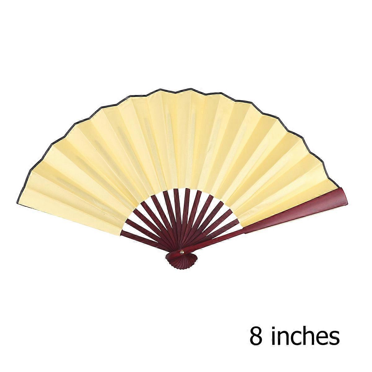 2pcs DIY Fabric Folding Fans, Yellow Handheld Fans with Simulated Red Wood Frame, Portable Summer Decor Accessories for Weddings & Events