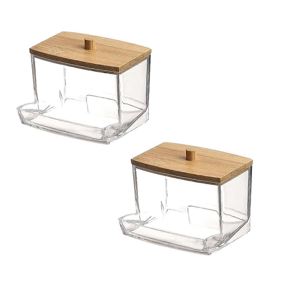 2PCS Acrylic Cotton Swab Box with Bamboo Cover, Cotton Swab Storage