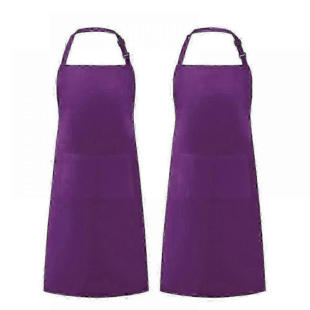 2-Piece Adjustable Bib Apron With 2 Pockets, Kitchen Apron For Men And Women Chefs, Kitchen Specific Apron - Purple