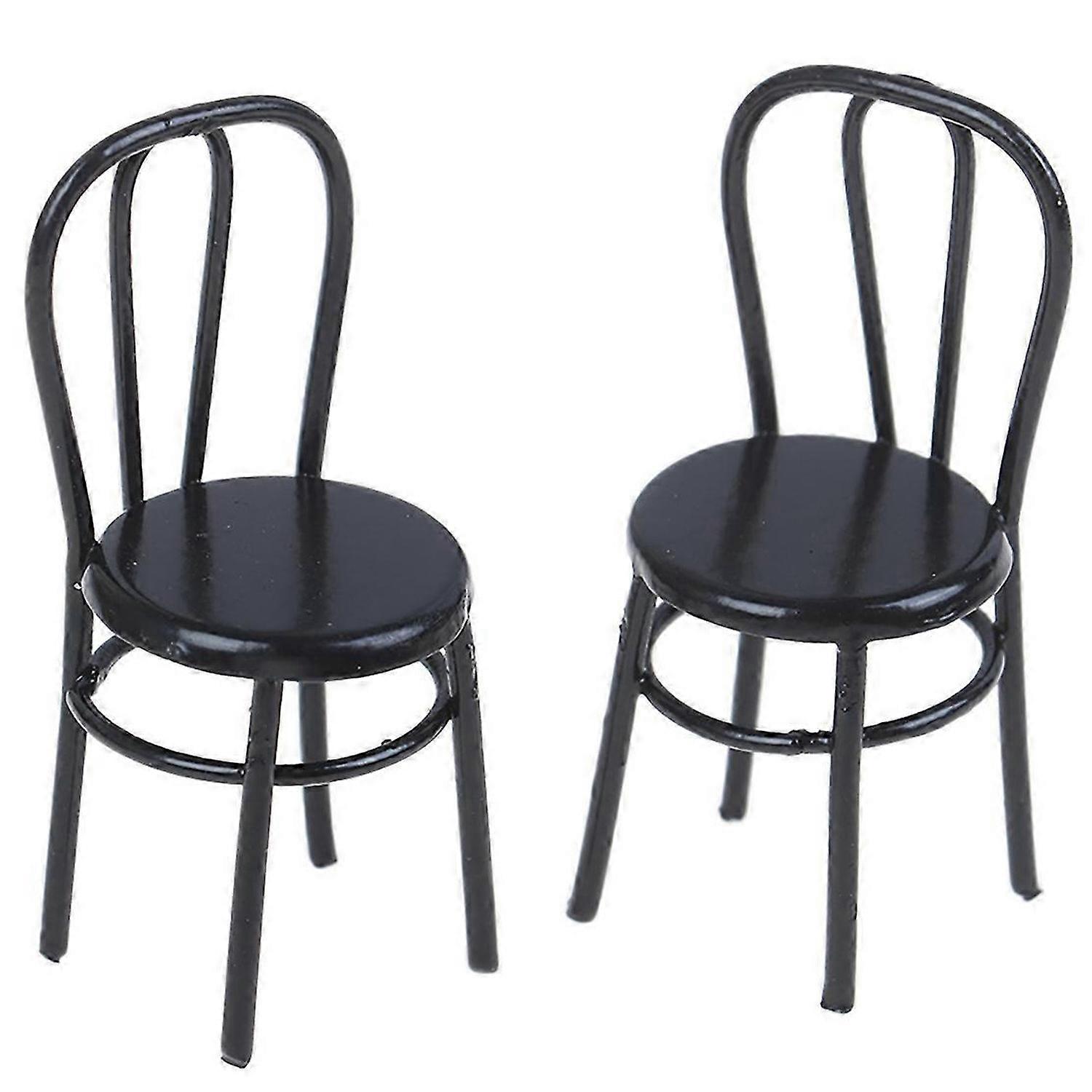 2 Pcs Miniature Black Dining Chair 1:12 Scale Mini Metal Chairs for DIY Kitchen Furniture Decoration