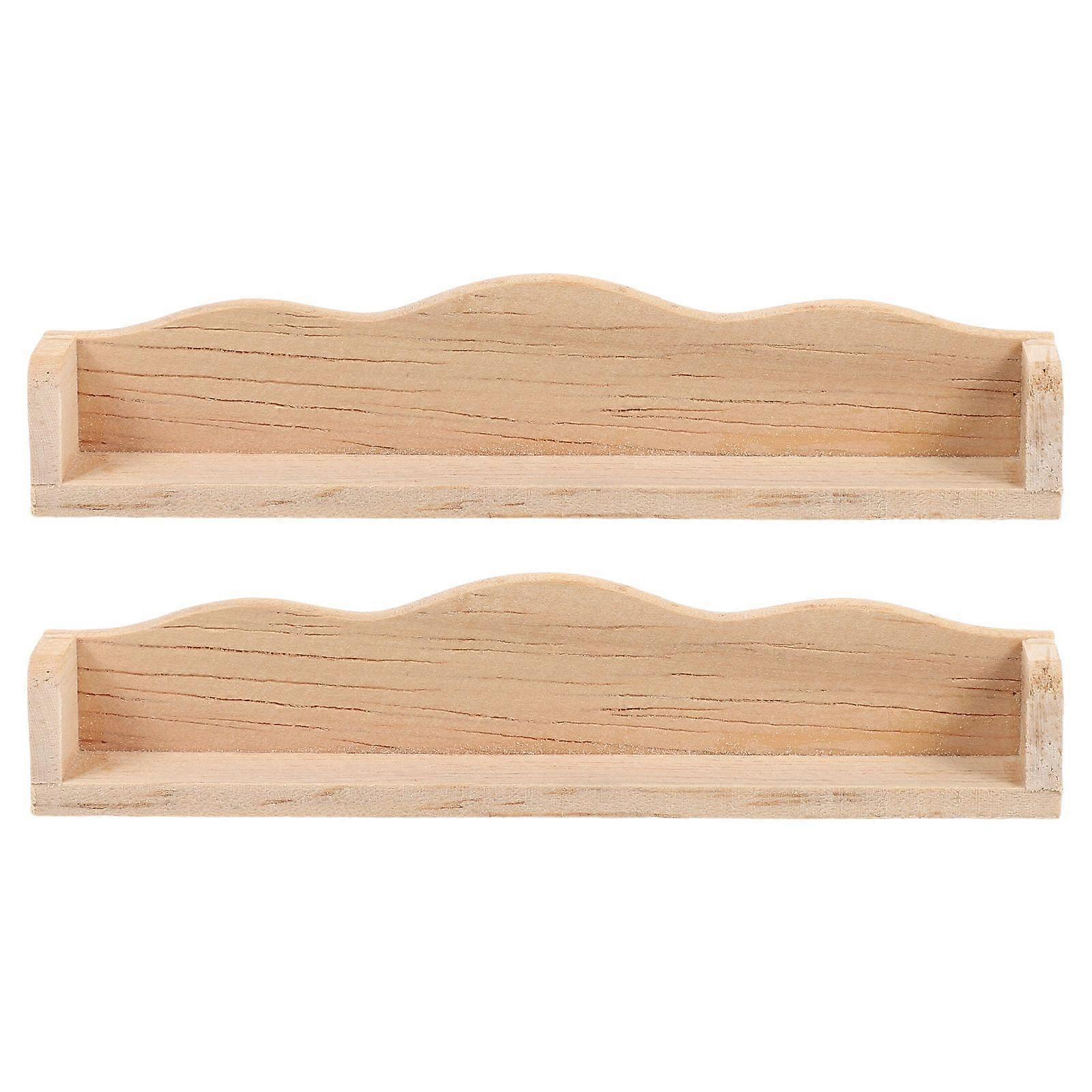 2pcs Miniature Wooden Wall Shelf Doll House Adornment Miniature Wall Shelf Furniture