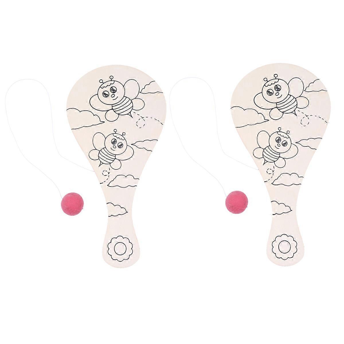 2 Pcs Hand-painted Wooden Racket Kindergarten Kids Ball Game Props Children Manual DIY Painting Graffiti Fill Paint Toy (Bee)