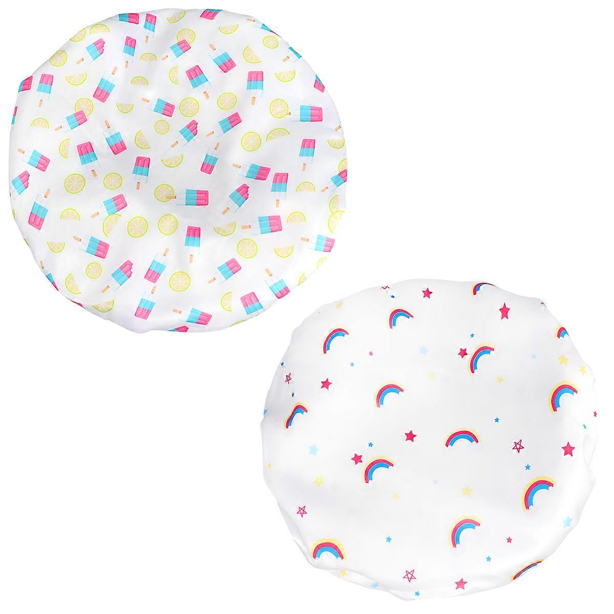 2pcs Printed Satin Bath Hat Double Layer Sleeping Waterproof Shower for Ladies Adult Assorted Color