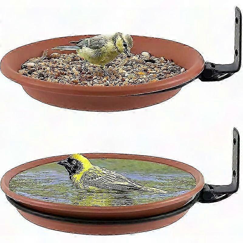 2 PCS Bird Waterer Feeder & Bath for Outdoor Balcony - Wild Bird Food Dispenser & Bath (Brown) by Zekai