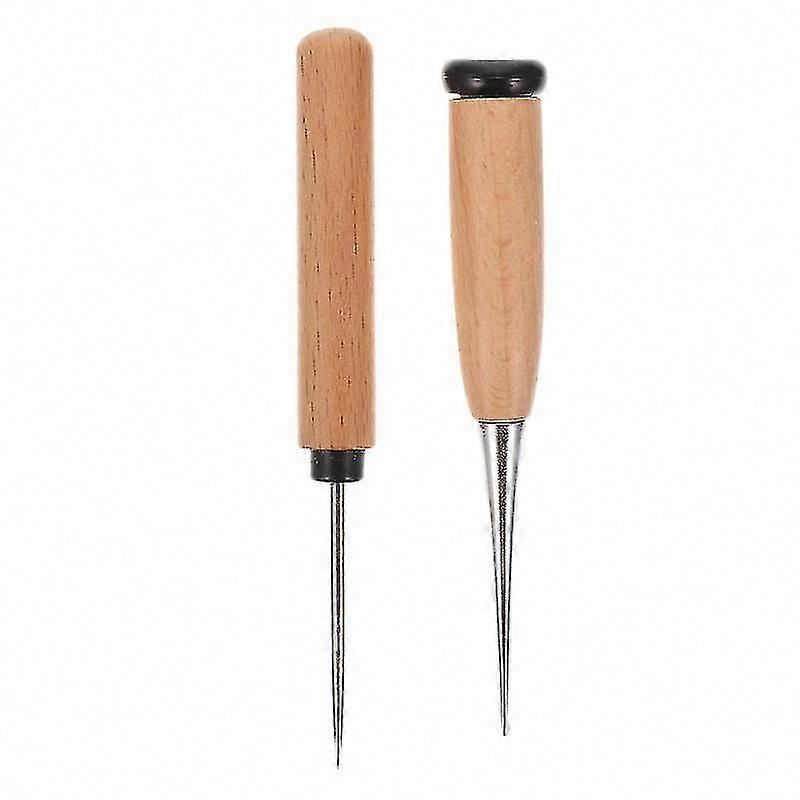 2pcs Wooden Handle Awls for Leather Craft and Sewing Tools