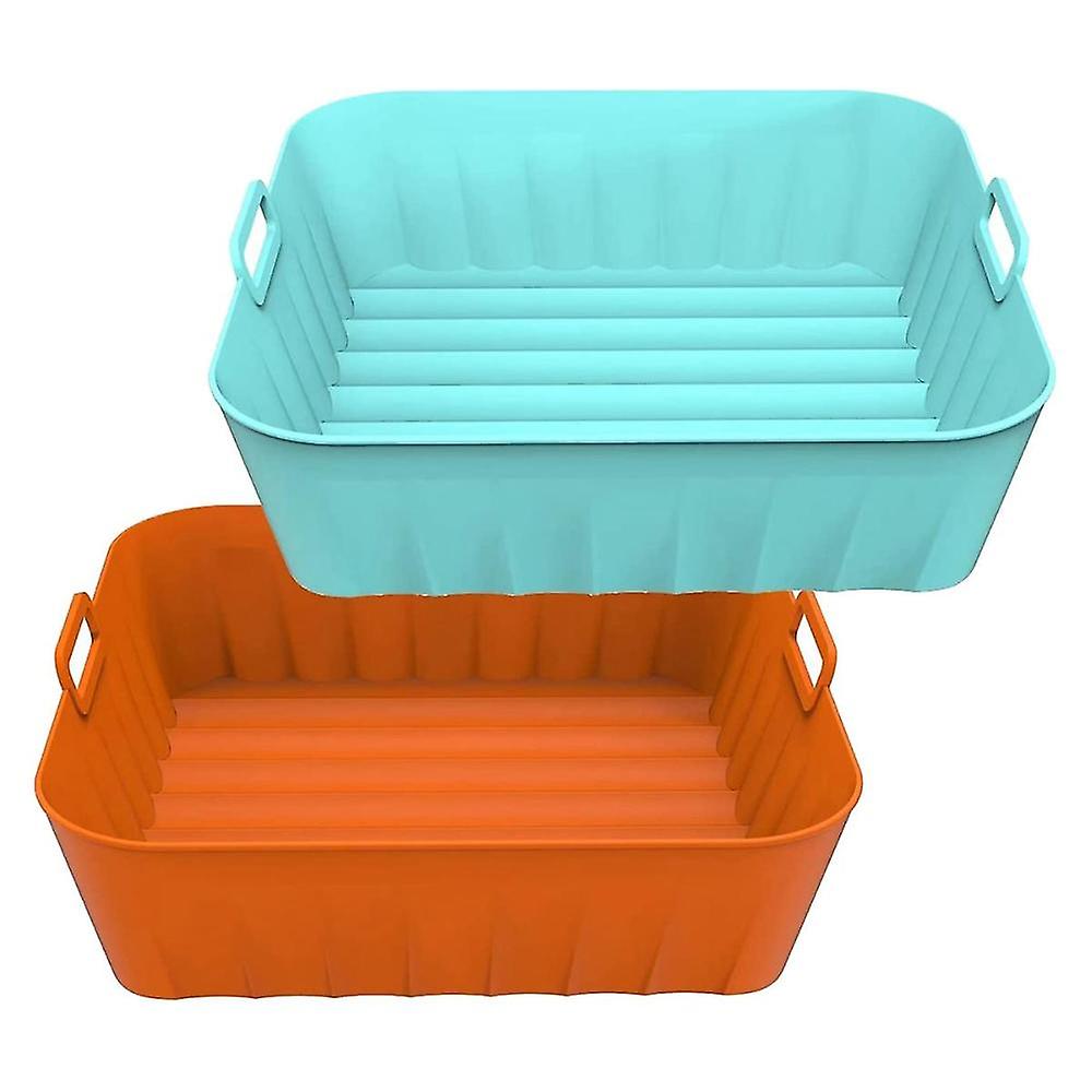 2pcs Fryer Silicone Pot,8.2 Inch Square Non-stick Fryer Silicone Liners Compatible, Blue+orange