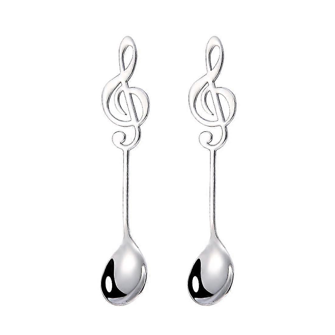 2 Pieces Dessert Spoons Decorative Music Note Mixing Spoons Coffee Spoons for Home (Silver)