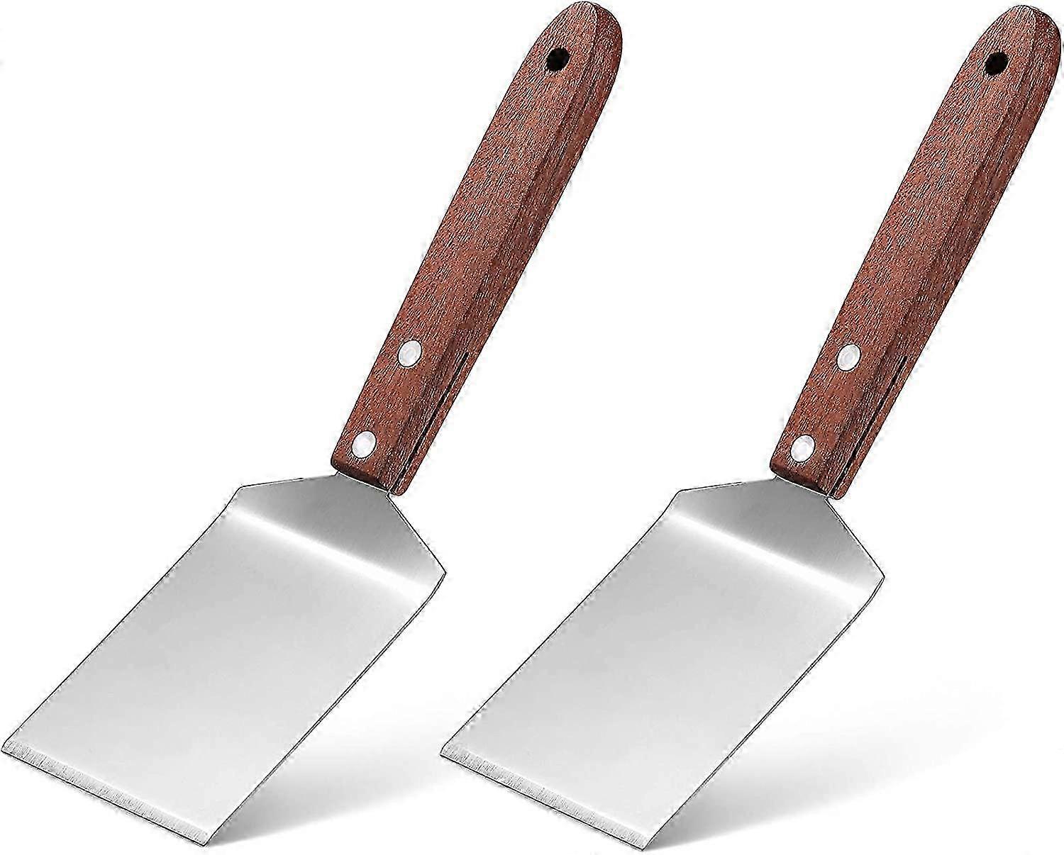 2 Pieces Small Brownie Cookie Spatula Metal Stainless Steel Spatula with Wooden Handle Heavy Duty Spatula for Kitchen Cooking Chef Baking Scraper Turn