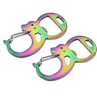 2pcs Colorful Stainless Steel Multi Function Key Chain Bottle Opener Creative Dolphin Design Outdoor Keyring