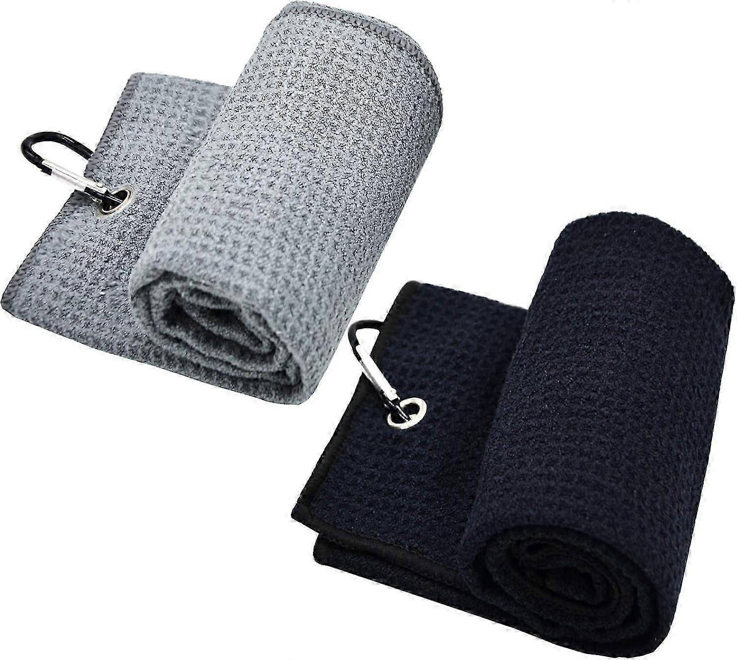 2 Pcs Microfiber Golf Towel With Clip For Golf Bags Fitness Sport Outdoor Yoga (Black+ Gray, 2)