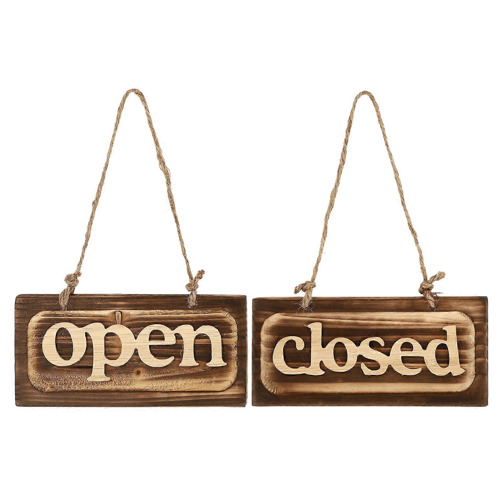 2pcs Wood Door Hanging Board Door Hanging Tag Wood Door Decoration Ornaments (Open and Closed)
