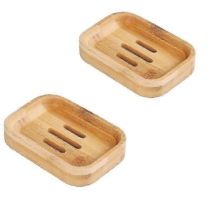 2Pcs Natural Bamboo Wooden Soap Dish Soap Box
