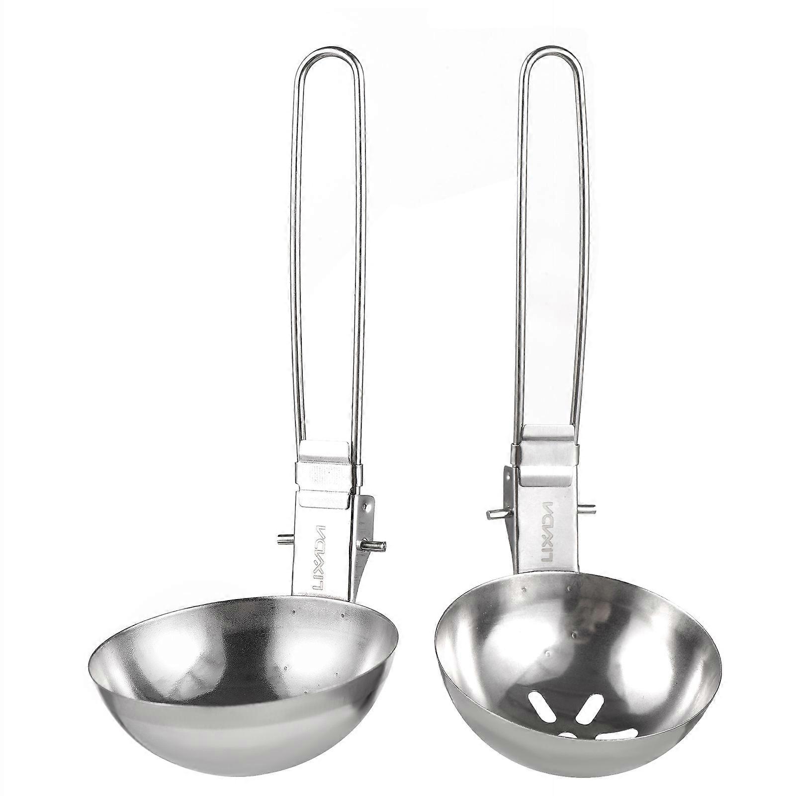 2Pcs Stainless Steel Skimmer Slotted Spoon and Soup Ladle Long Handle Serving Utensil Collapsible Camping Cutlery