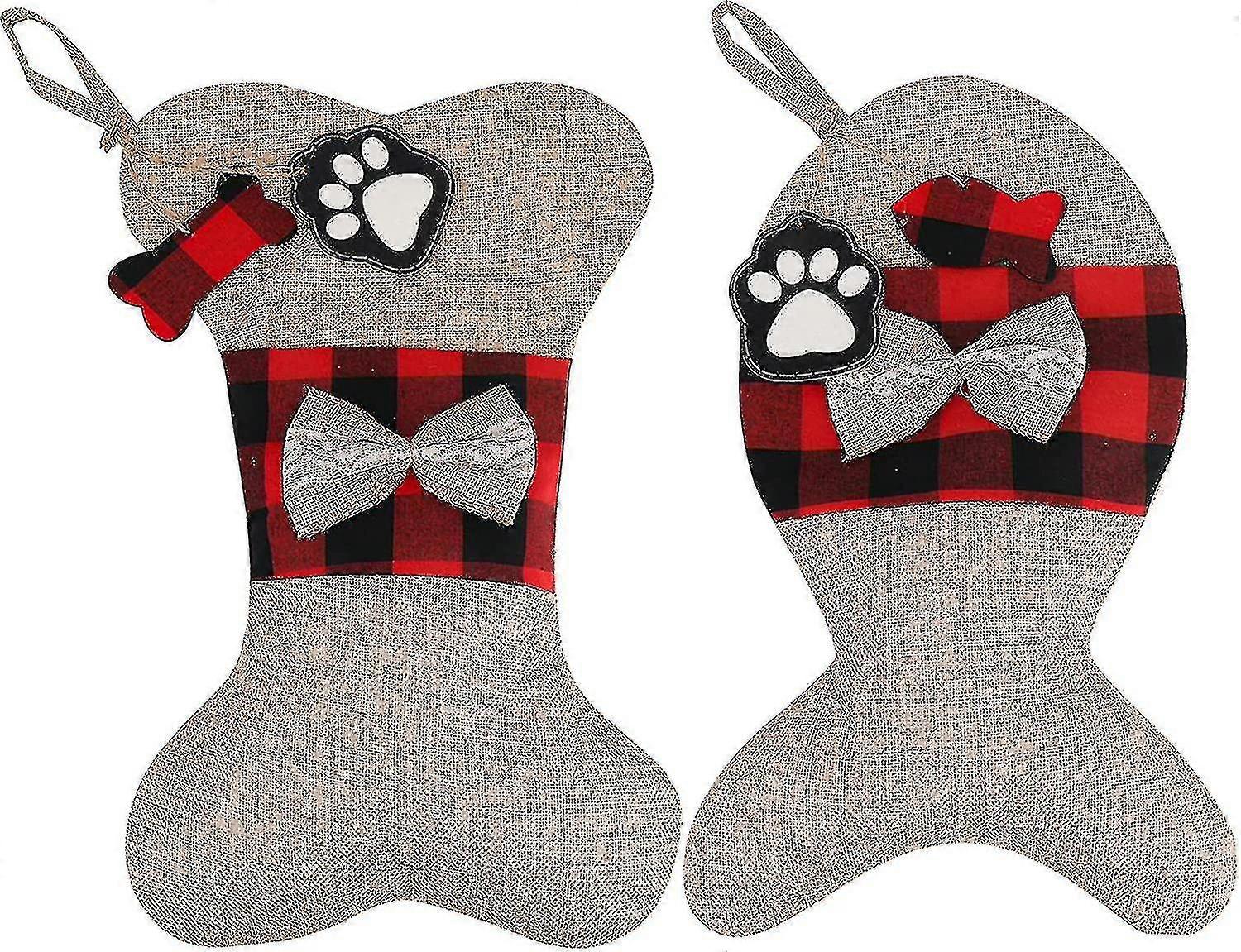 High Quality Material: Made of premium polyester, Strong and durable to contain stocking stuffersPet Christmas Stocking: The shape is the bone and fish that dogs and cats love. It is very suitable for filling in Christmas gifts for petsWide Applications: This traditional stocking with loop to be hung as festival decoration and gift pack. It also can as Christmas decorations, easy to hang onPerfect Christmas Gift: Considerate design, large enough space for stuffing small gifts, chocolates, candies, lollipop, gift cards, toys etc.