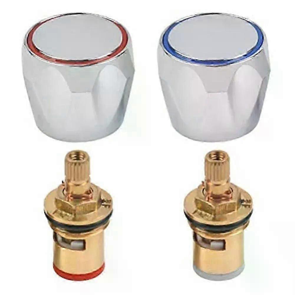 2 Pcs Hot Cold Faucet Handle Knob Copper Valve Tap Heads Thread Basin Sink 1/2 Inch Replacement For Bathroom Kitchen Taps
