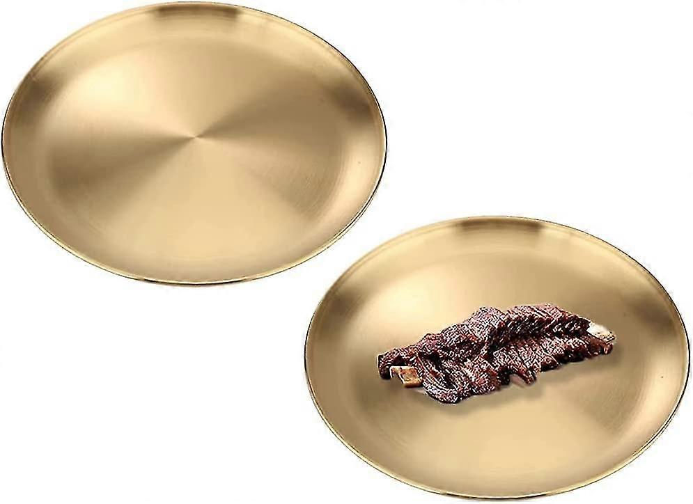 2 pieces of service tray, round metal tray, tray decorative, goes to the dishwasher the campsite, the picnic (gold)