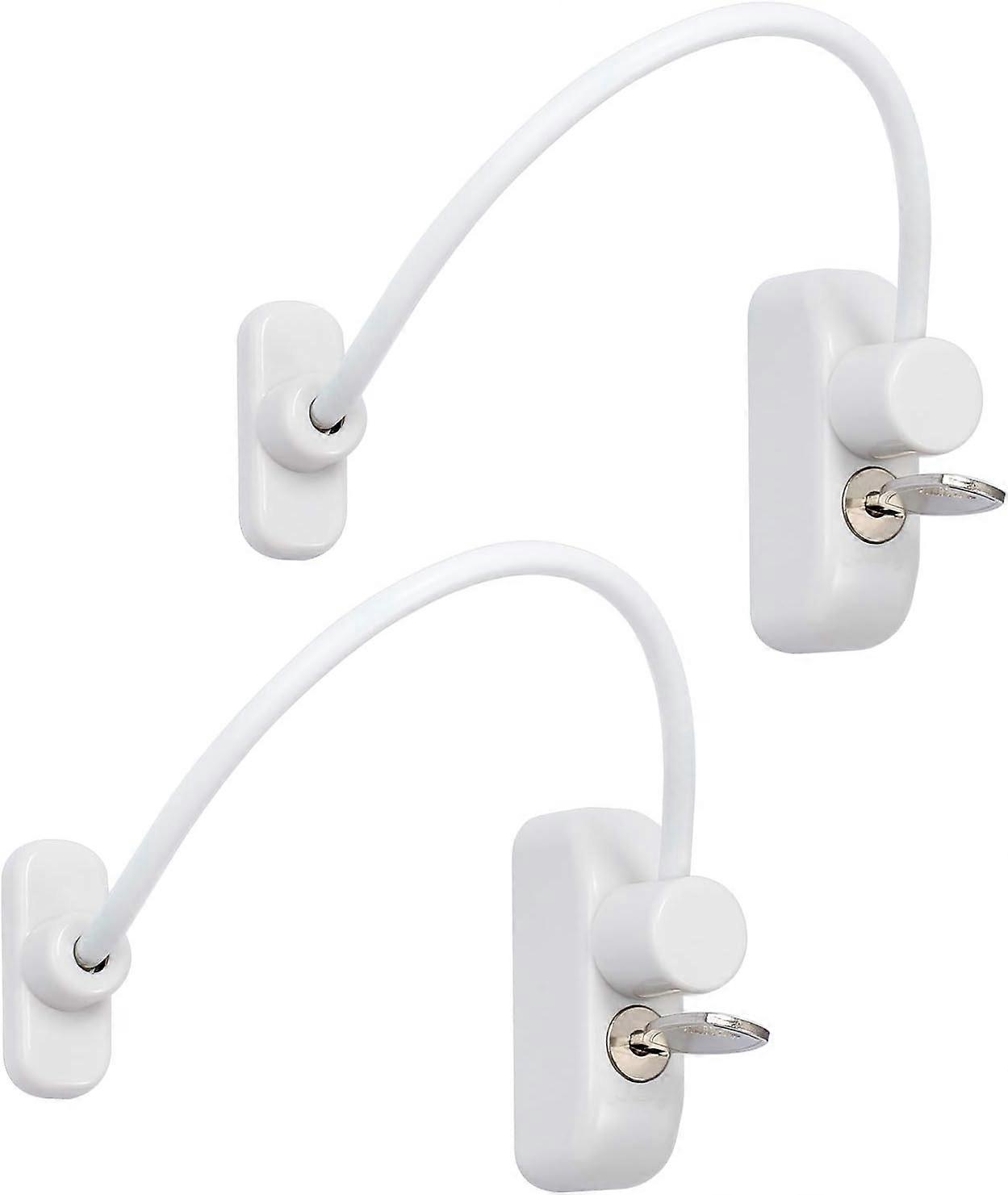 Baby safety lock: 2 pcs lockable window cable, allowing ventilation without compromising child safety. Ideal for home, public and commercial applications. High quality: made from PVC, wood, aluminum and metal. Coated with MRSA repellent. Easy to install: Can be easily installed on windows with four screws. Limits the distance a window can open. It can be removed from one end using the key, windows can be opened fully. Keys provided: can be locked and unlocked in seconds, suitable for all materials: suitable for most types of windows and small doors. Screws provided