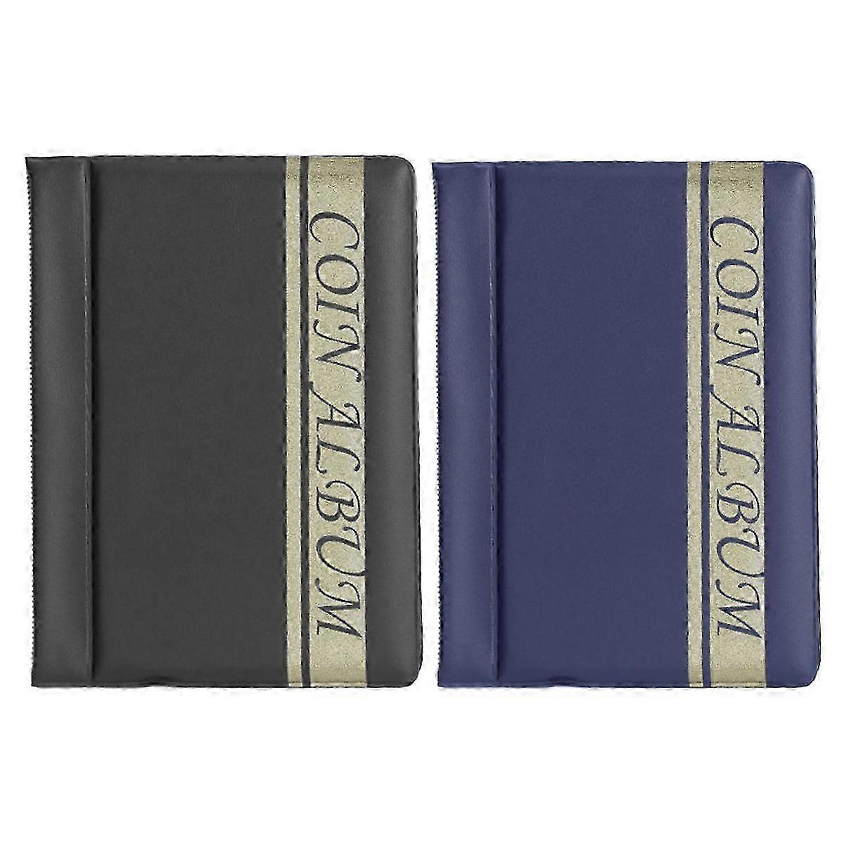 2PCS 120 Pockets Coin Album 2, Coin Binder, Coin Storage, Book Coin Collection Album - Dark Blue + Black