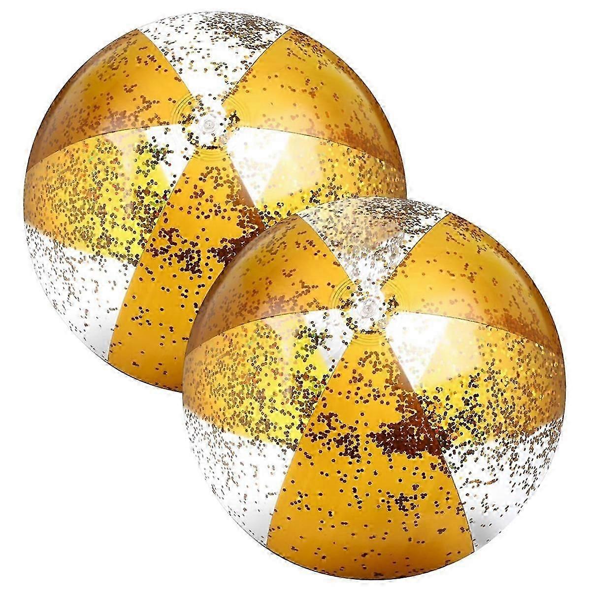 2pcs 16inch Inflatable Beach Balls Gold Confetti Pool Balls For Swimming Pool For Adults Summer Birthday Party Gold