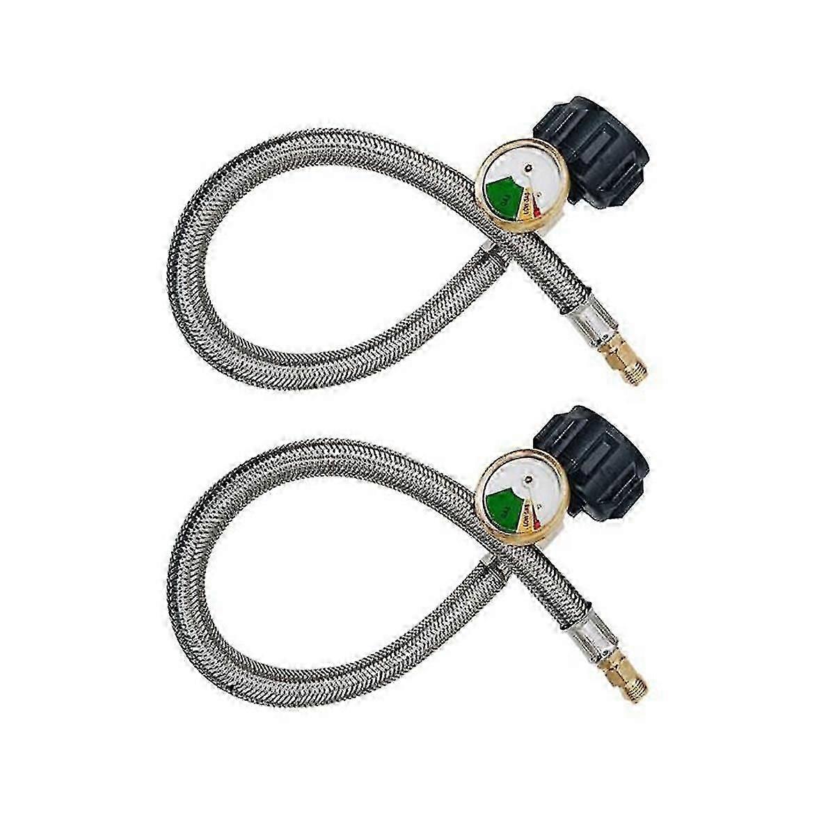 2pc 18inch Stainless Steel Braided Rv Regulator Propane Hose Connector With 1/4inch Male Npt Gauge