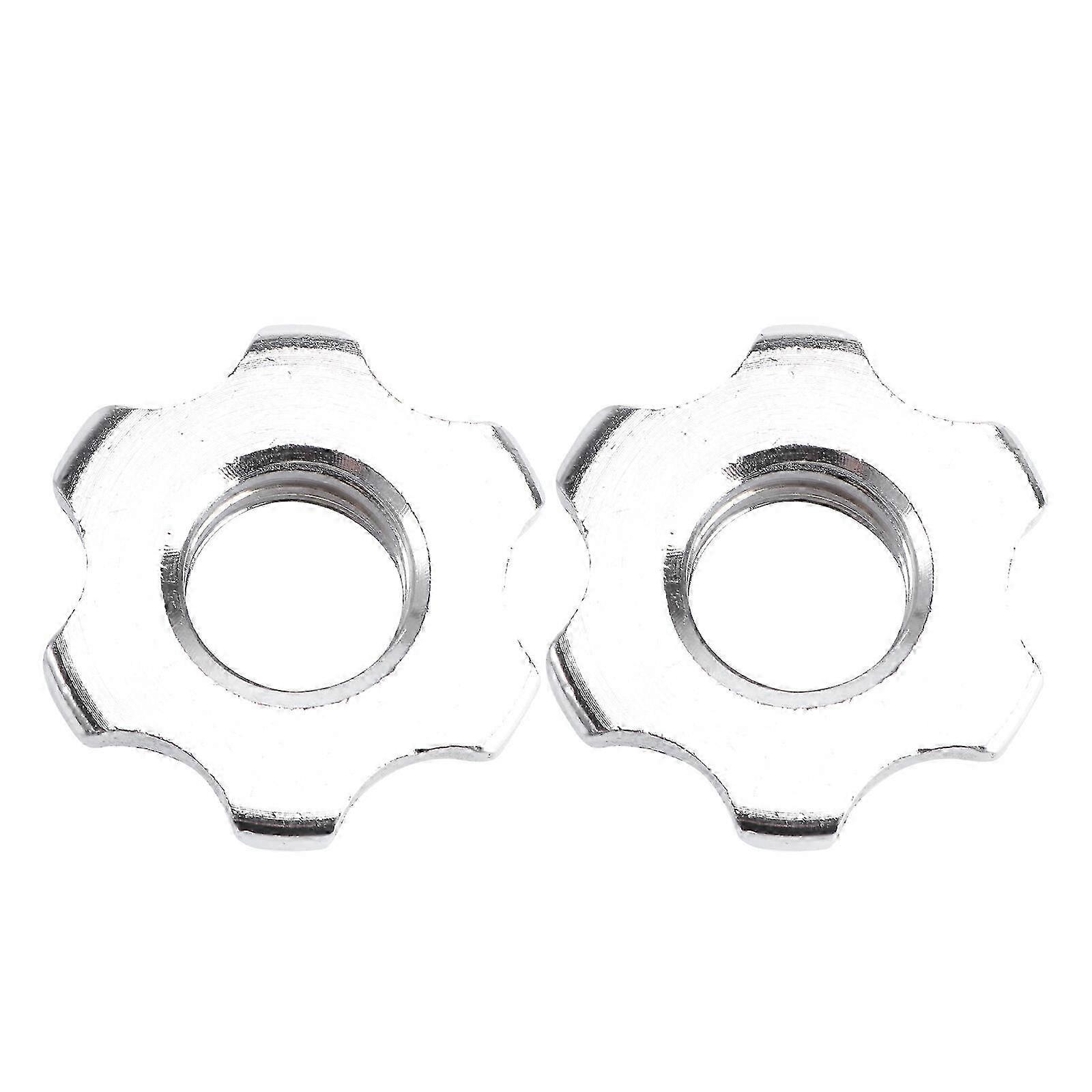 2PCS 2.5cm Casting Iron Hex Nuts Anti-slip Spin-Lock Collar Screw for Barbell Dumbell Weight Lifting (Silver)