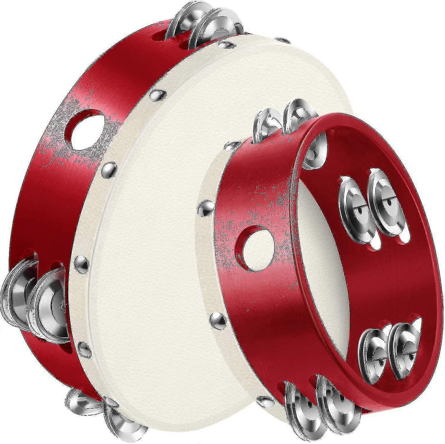 2 Pieces (6" & 8") Wooden Handheld Tambourine, Bell Tambourine (red, Double Row)