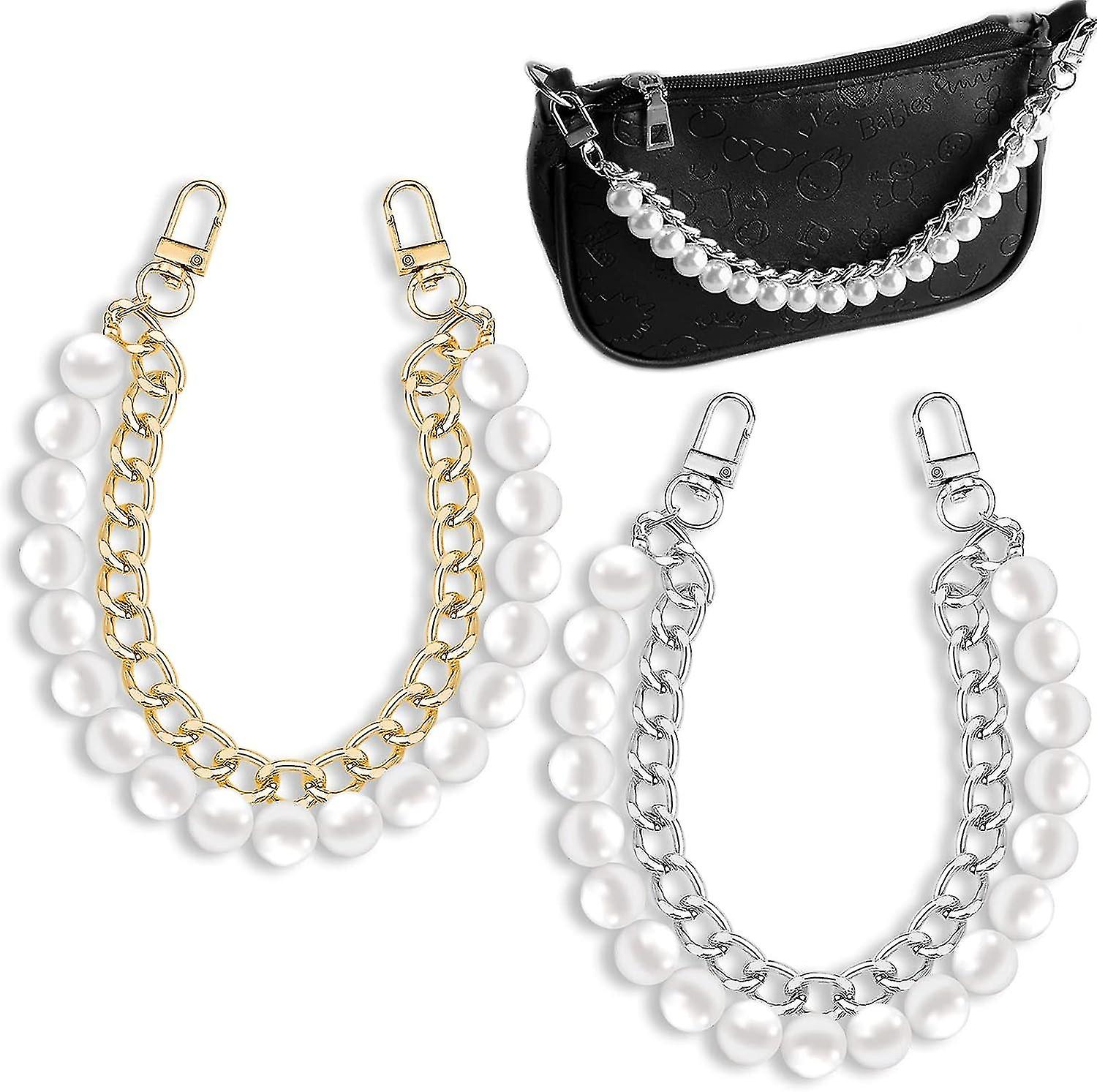 2 Pcs 9.45" Pearl Purse Chain Short Handle Replacement Bag Chain Strap Metal Shoulder Chain Imitation Pearl Handbag Chain Accessories For Purse Bags W
