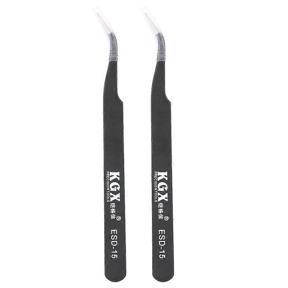 2PCS ESD-15 Anti Static Precision Tweezers Stainless Steel Curved Tweezers Maintenance Tools(Edd-15 (Curved ) )
