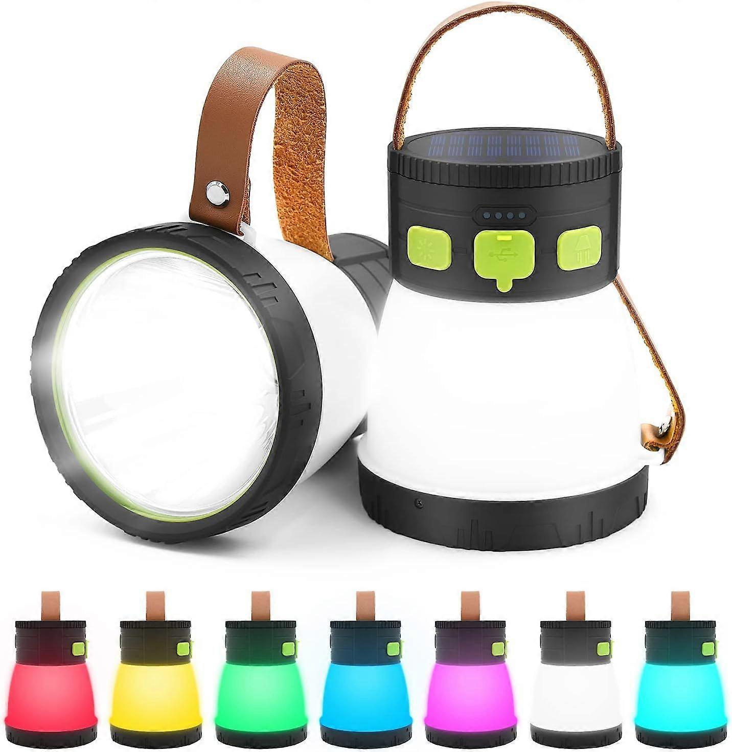 2pcs LED Solar Camping Light, 1500 Lumens, Portable with Hook, Solar Tent Light, Camping Light, Rechargeable RGB Night Light, Outdoor Light for Hiking