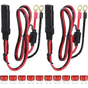 2 Piece SAE Connector to O-Ring Terminal Harness, 2 Pin Spade Quick Disconnect Extension Cable, 0.6m SAE, 10A Fuse