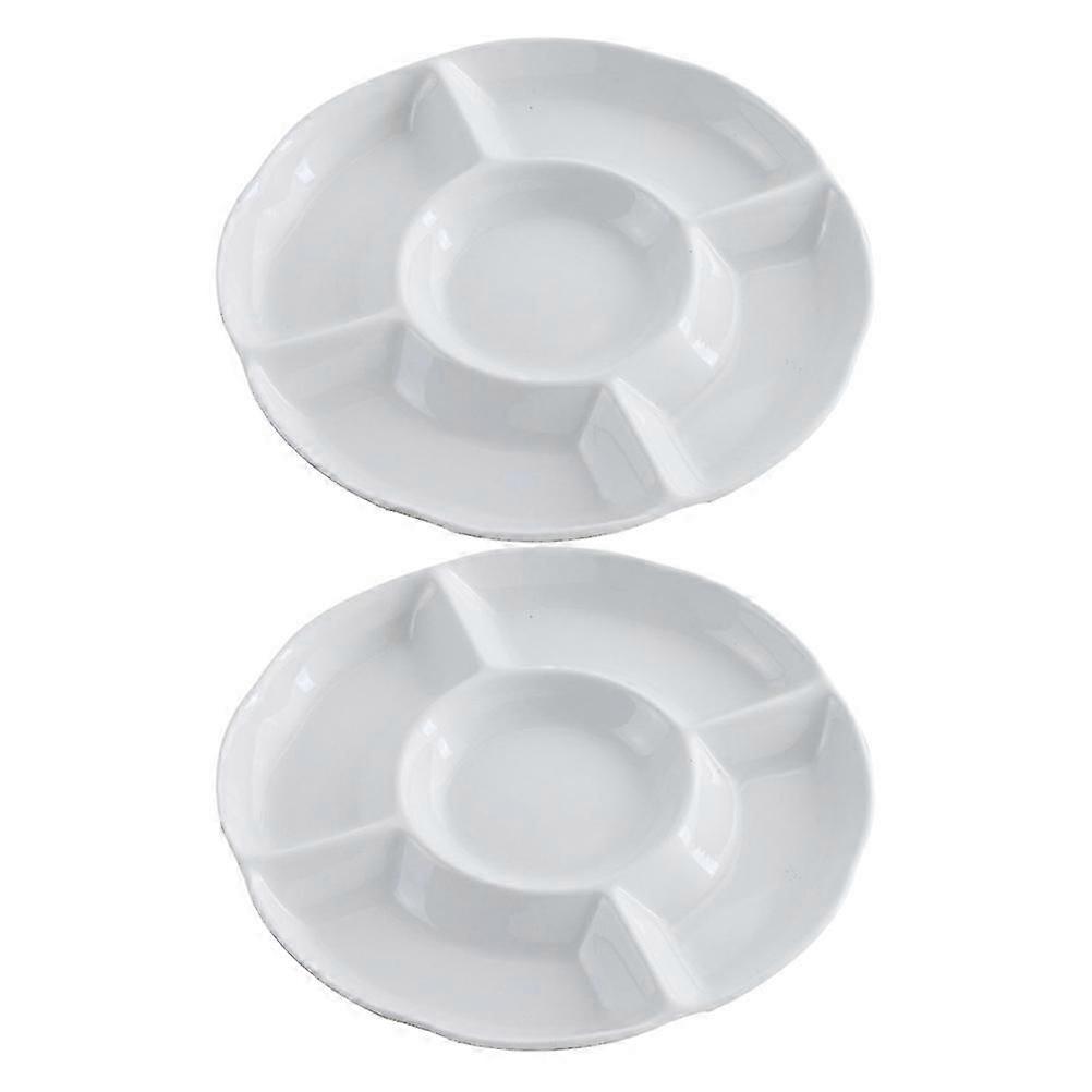 2pcs Plastic Snack Platter Imitation Porcelain Melamine Tableware Divided Plate