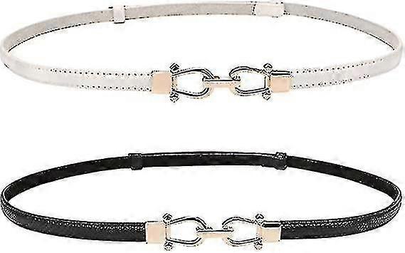 2 Pcs Leather Skinny Women Belt Thin Waist Belts With Golden Buckle For Dresses Up To 37 Inches