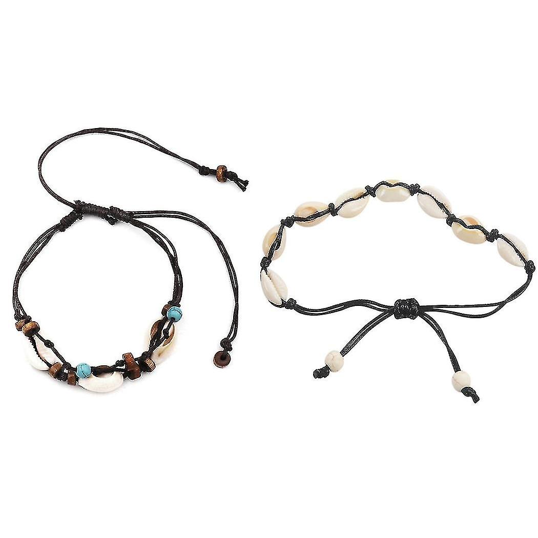 2 Pcs Anklets For Women Shell Foot Jewelry Summer Beach Barefoot Bracelet Bohemian-black & Brown