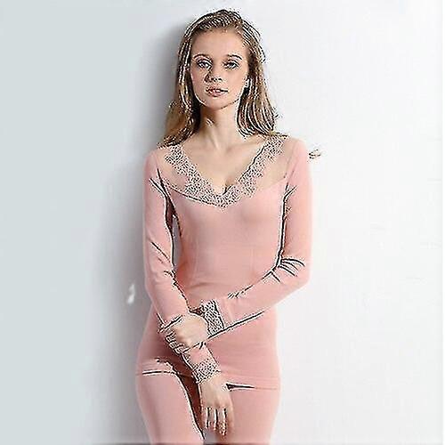 2 Pcs Lace Long Sleeve Johns Cotton Clothes For Winter Women's Warm Thermal Shirt Underwear Set Slim Soft Thick Seamless Shape