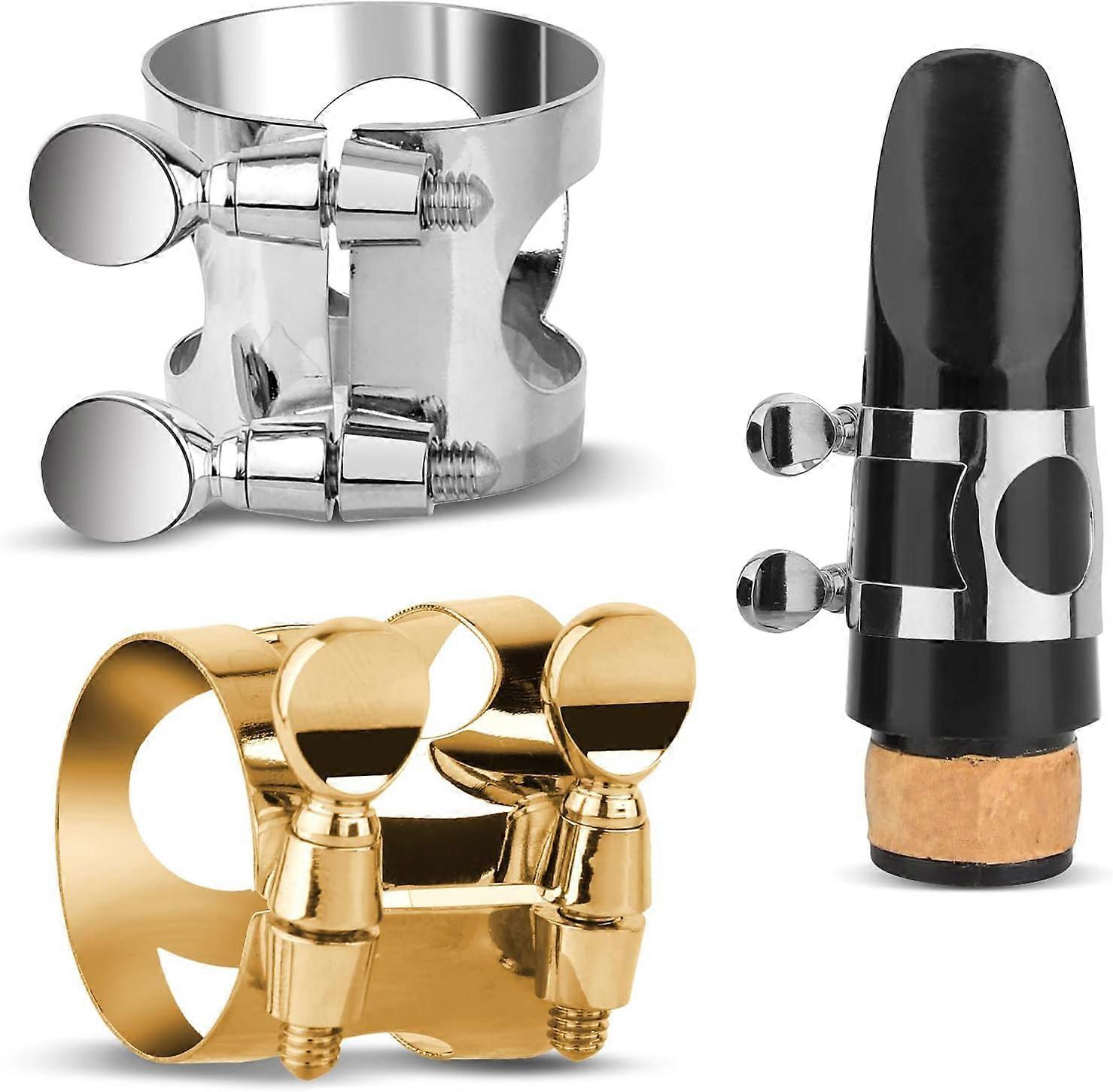 2pcs Clarinet Ligature, Clarinet Mouthpiece Ligature B Flat with Adjustable Screws Clarinet Ligature Fastener for Musicians Beginners (Silver, Golden)