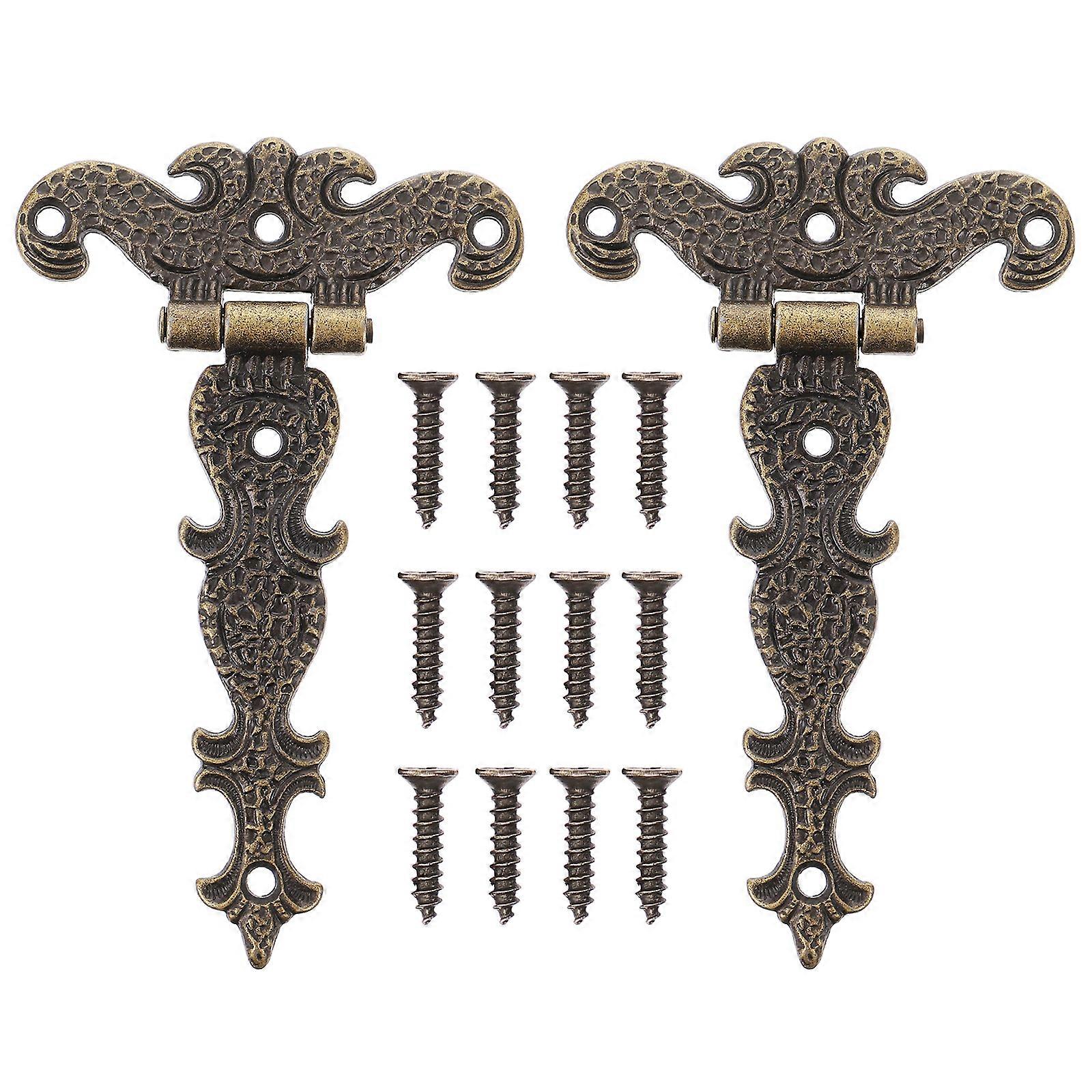 2pcs Retro Decorative Zinc Alloy Butt Hinges Antique Wooden Box Hinge (Bronze)