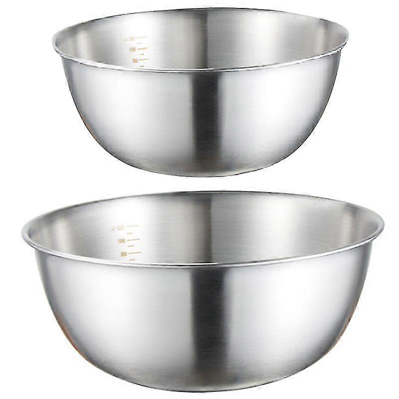 2pcs Stainless Steel Bowls Mixing Bowl With Scale Deep Mixing Egg Bowls Non Slip Kitchen Bowl For B