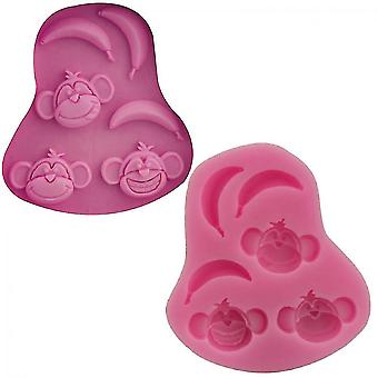 2pcs Monkey And Banana Shaped Silicone Molds For Diy Cake Fondant Biscuit Cookies Soap Sugar Pudding Chocolate Hard Candies