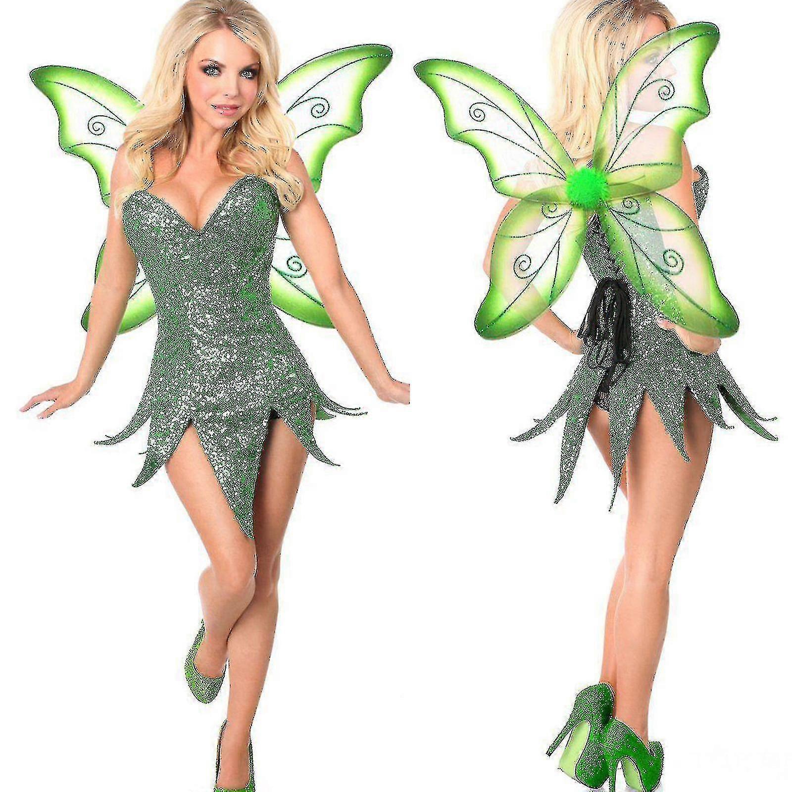 2 Pcs Women's Fairy Elf Costume Dress With Fairy Wings Halloween Christmas Costumes