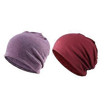 2pcs Women's Slouchy Beanie Hat Stretch Summer Hat Cap Headwear Turban Adjustable Hat Solid Purple + Red Slouchy Cap