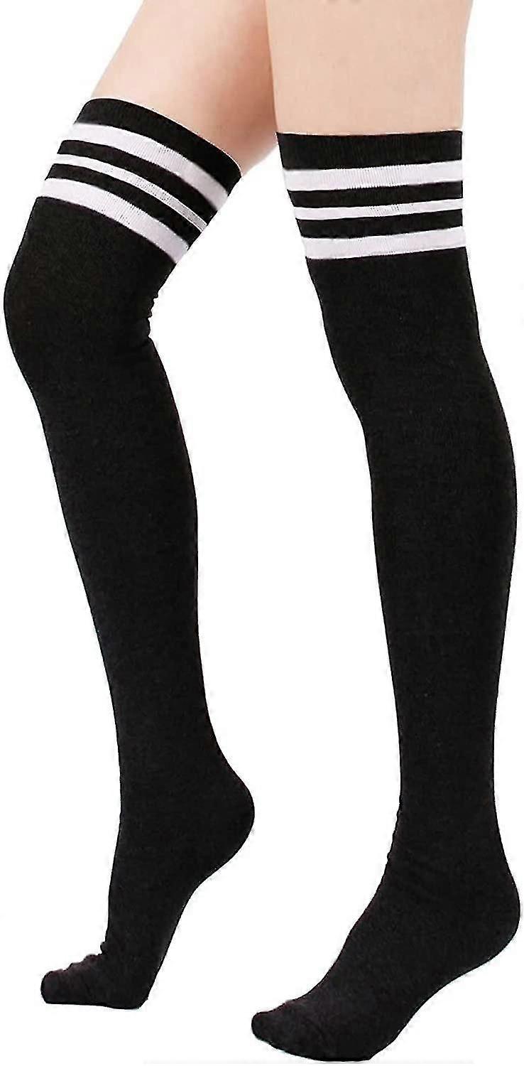 2pcs Women's Striped Thin Tube Socks Over Knee Socks Casual Knee Socks Striped Over Knee Socks Black 1-size
