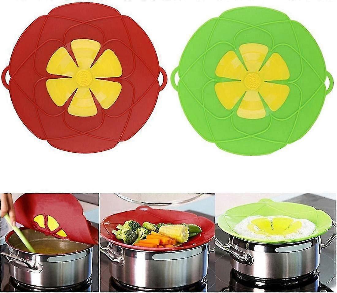 2pcs Spill Stopper Lid Cover,boil Over Safeguard, 10.2"green+red