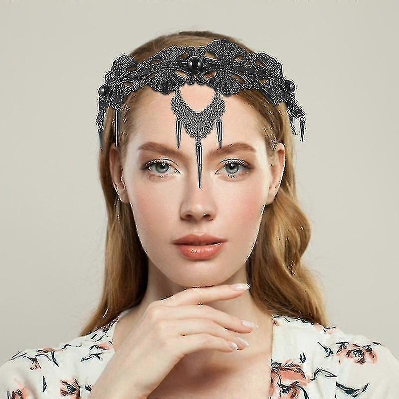 2pcs Elegant Lace Forehead Crown Headband Halloween Party Prop For Women